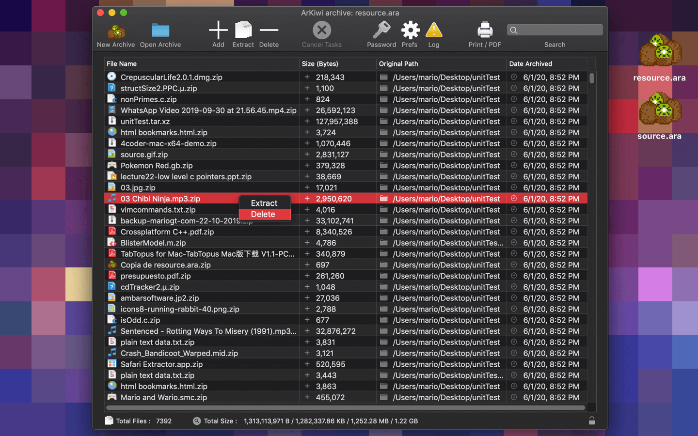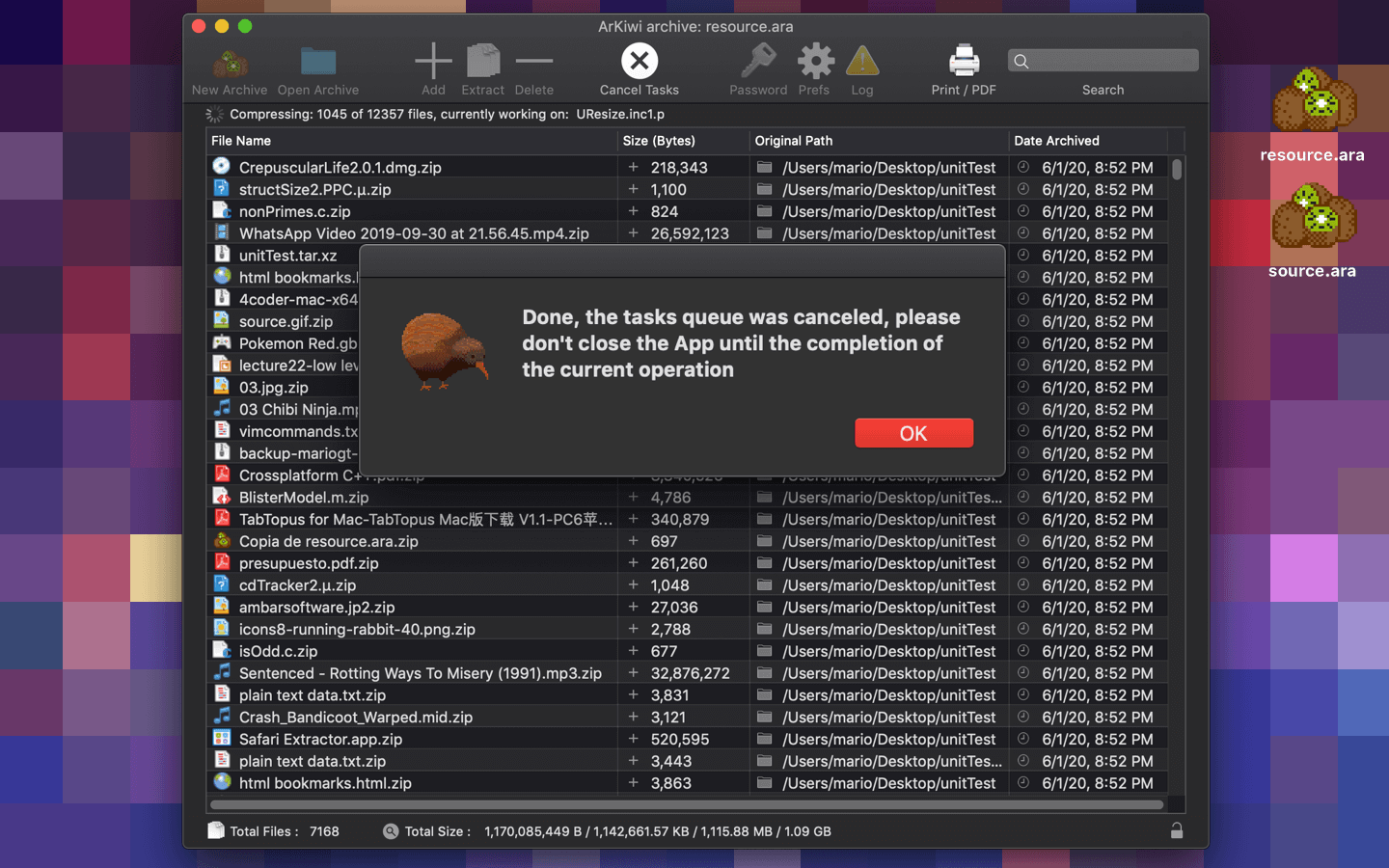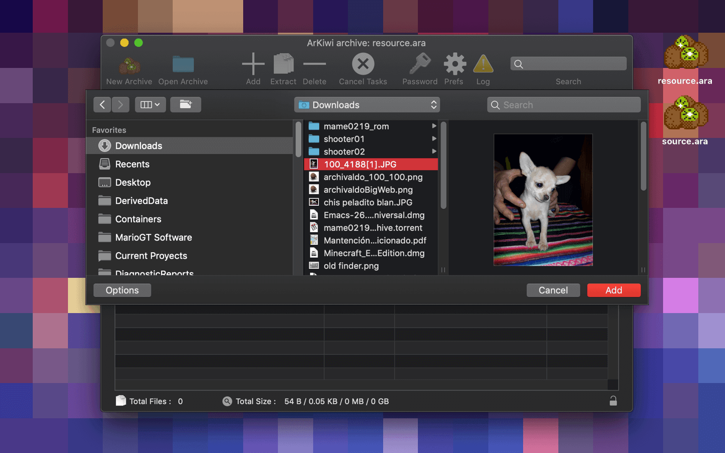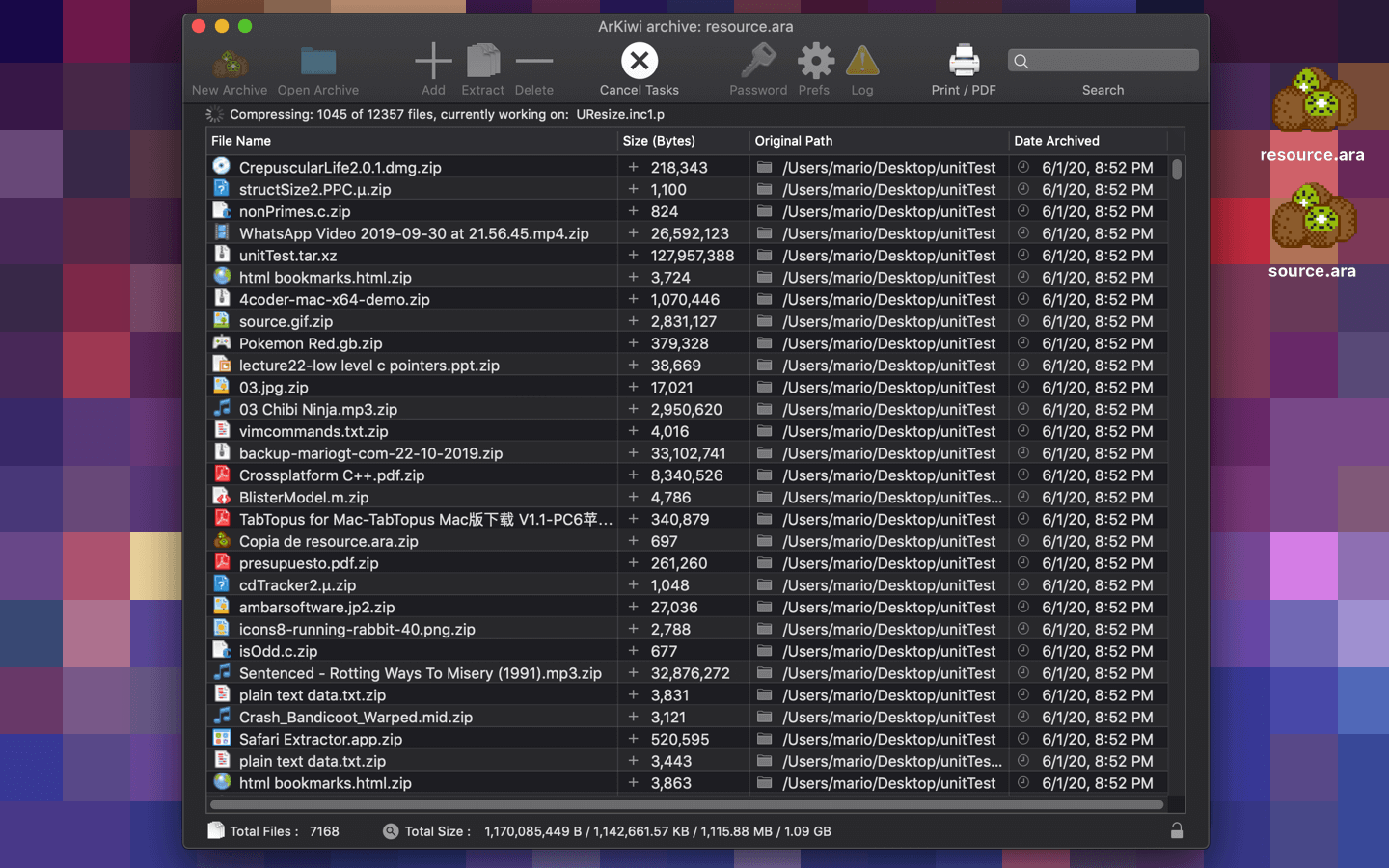 ArKiwi, is a blazing fast and optimized macOS file archiver App, where you can add, compress, extract, delete, password protect and search all your files, in a compact binary file system called ARA (ArKiwi Resource Archive). The ARA file is a file system with the capacity to accommodate theoretically unlimited numbers of files, of any size or type (jpg, gif, avi, mpg, ogg, mov, txt, mp3, mp3, acc, doc, iso, etc) only limited by the free space available in your SSD or other storage device. Also, you can add or remove files from your ArKiwi archive at any time, ArKiwi will contract or expand dynamically the archive depending on your needs.